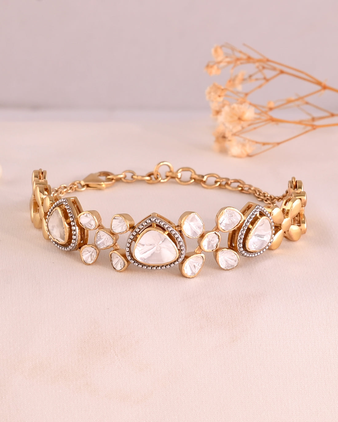 Elevate your wrist with the Emerald Royale Polki Bracelet, a masterpiece of traditional craftsmanship and...