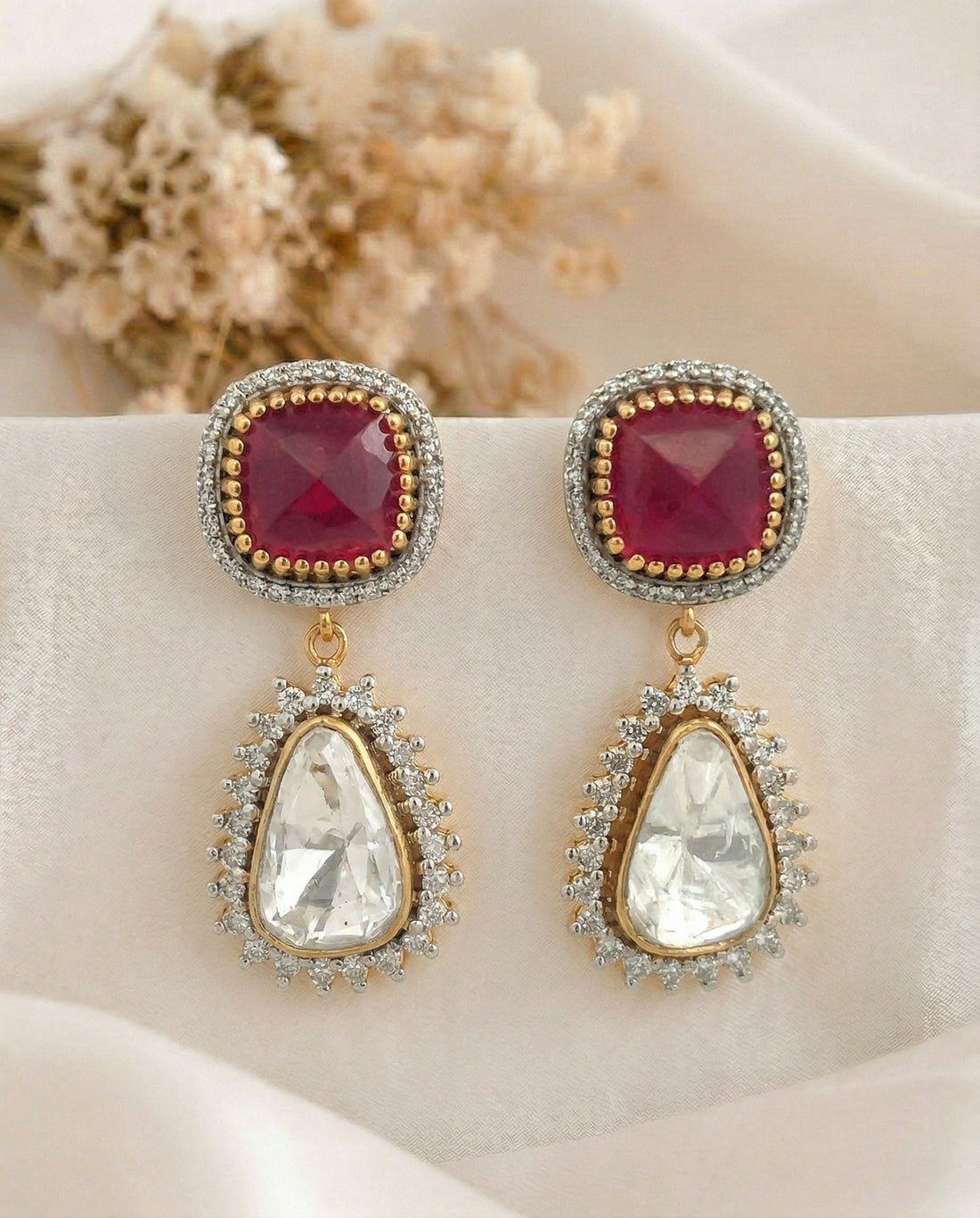 Polki Spark Ruby Earrings