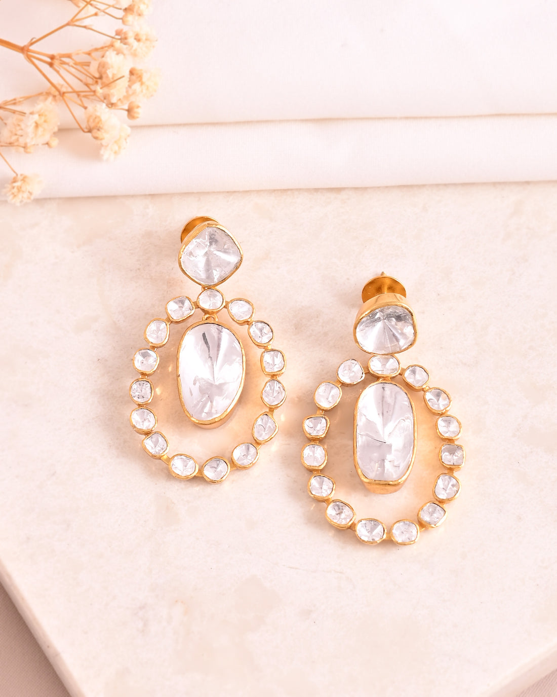 Mohak Polki Drops showcase exquisite craftsmanship with traditional Polki diamonds set in a timeless design....