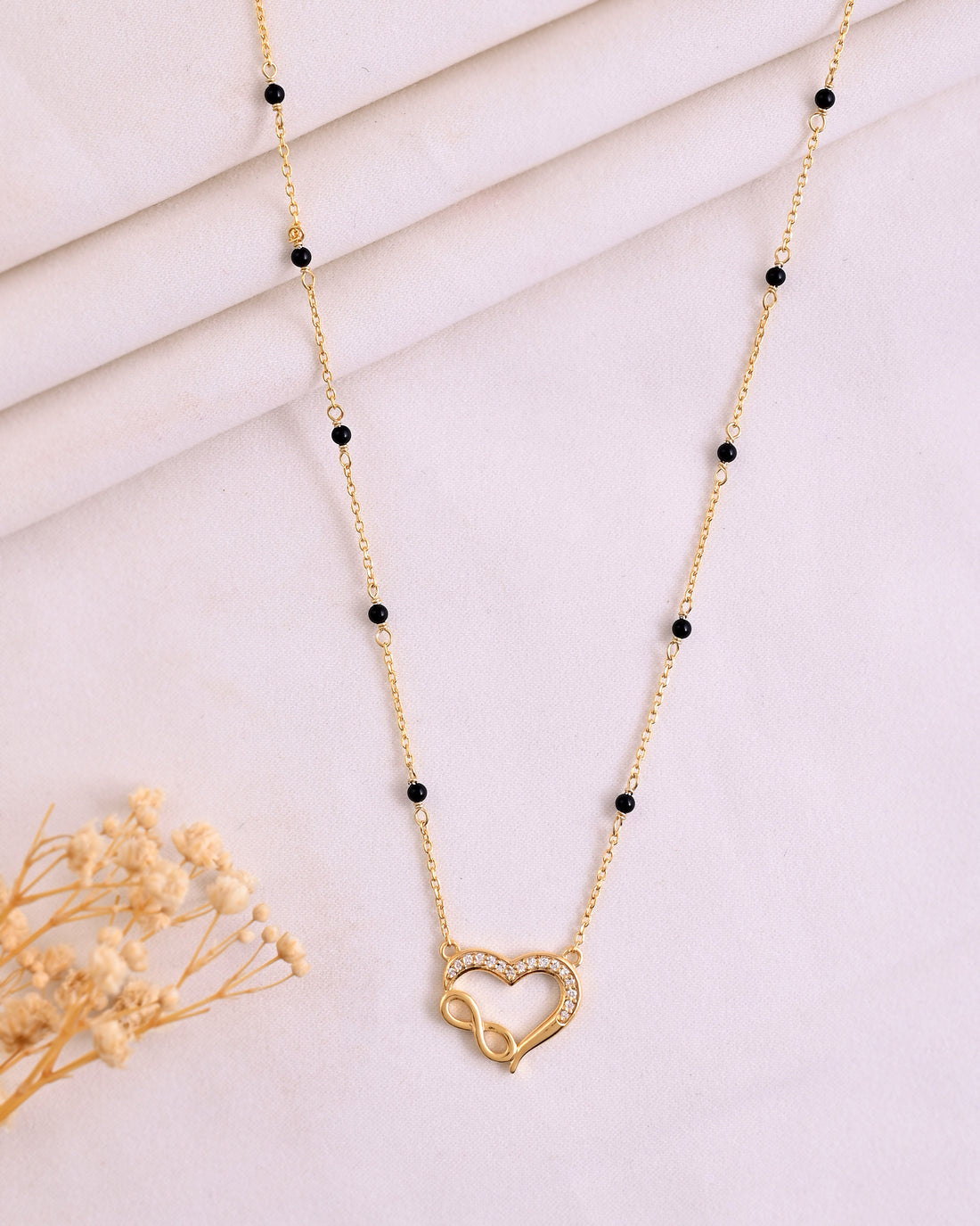 The Eterna Heart Mangalsutra is a sophisticated emblem of love, expertly crafted to capture timeless...
