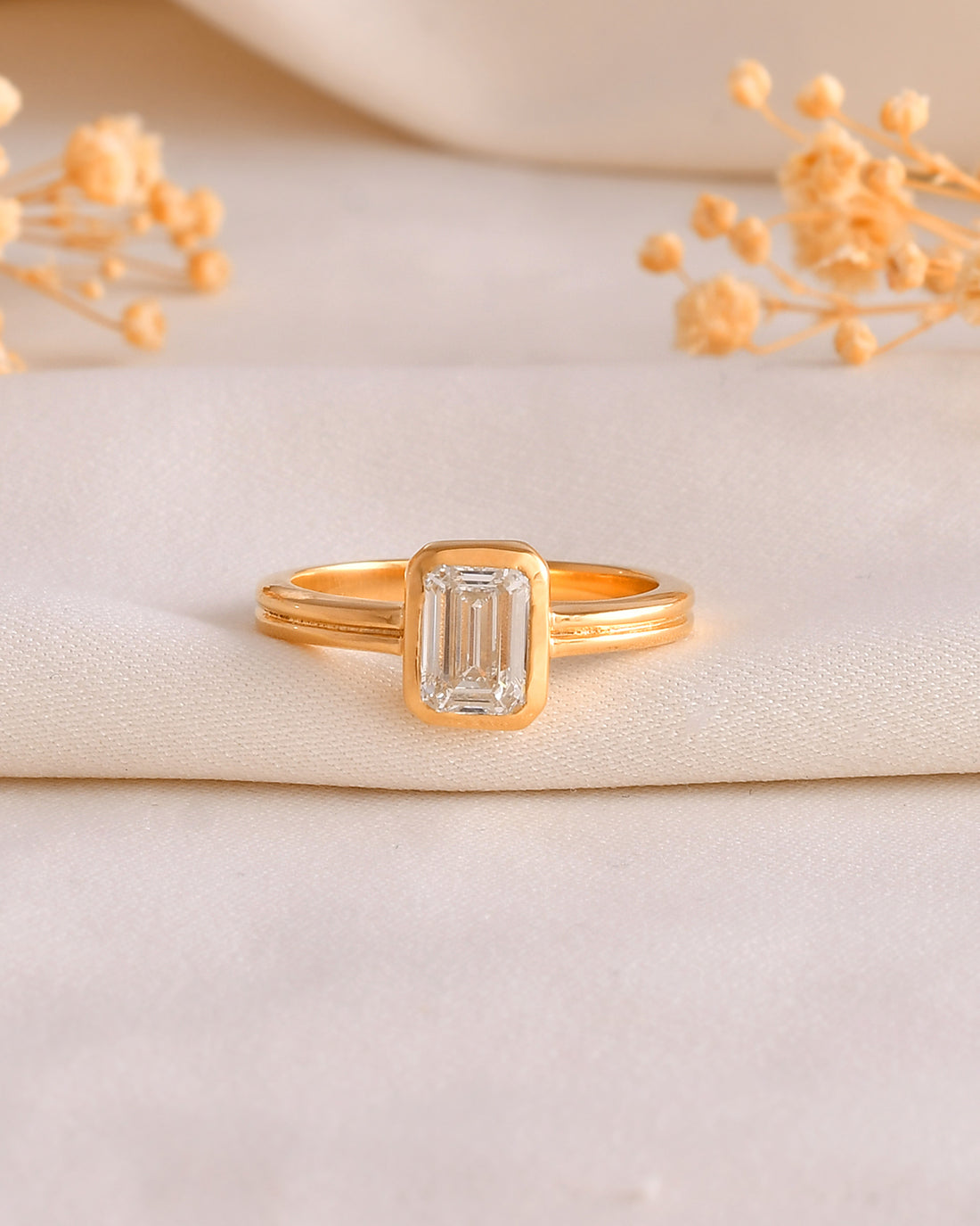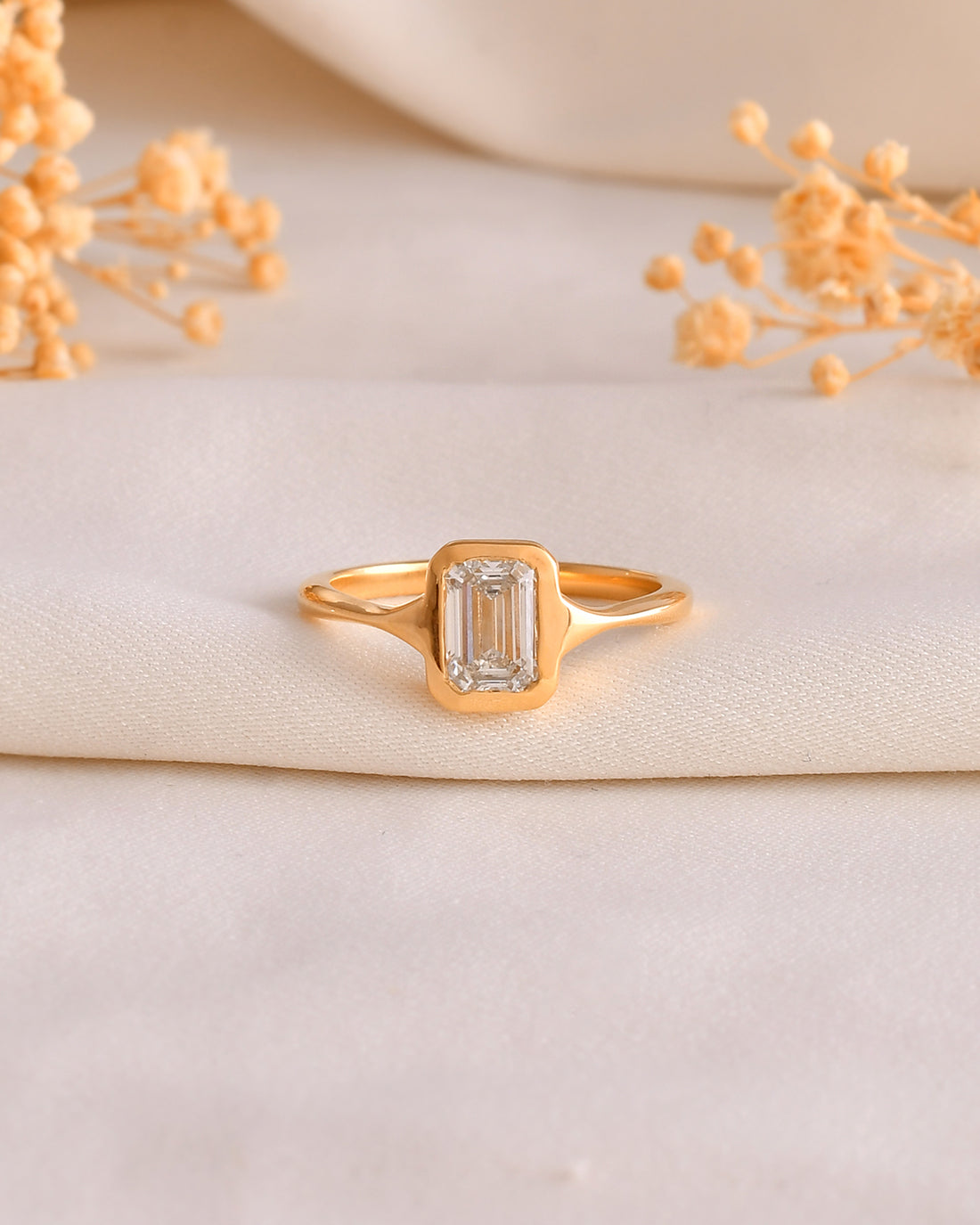 This emerald cut 1-carat diamond ring showcases a timeless elegance with its precisely cut diamond...