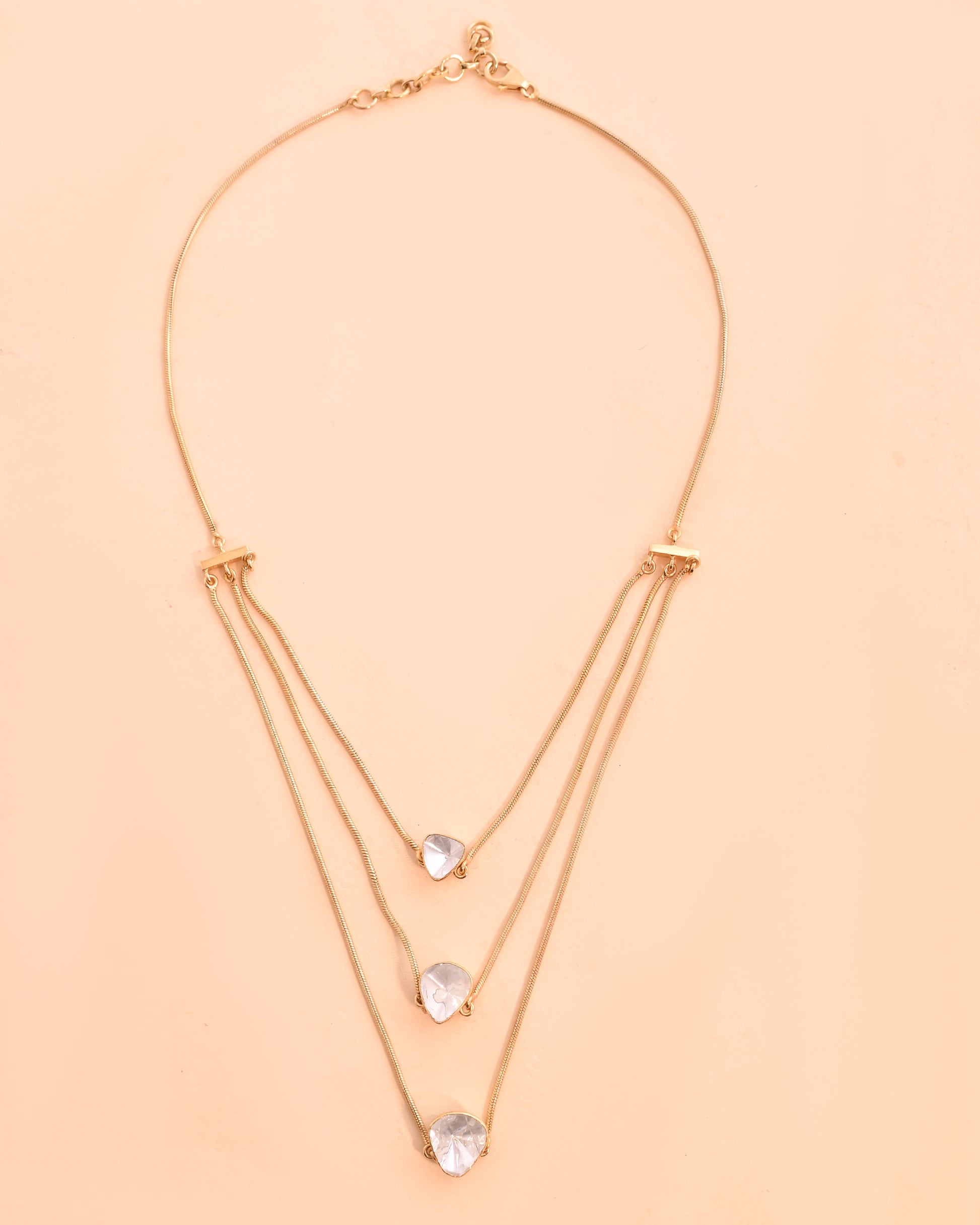 Mehr Polki necklace This exquisite piece showcases the timeless elegance of traditional Polki craftsmanship. Hand-selected uncut diamonds are meticulously set in 22-karat gold, creating a luminous centerpiece that captures light with unparalleled brilliance. The Mehr design features a harmonious blend of geometric and organic forms, reflecting centuries of jewelry-making heritage. Each stone is individually positioned to maximize radiance while maintaining the authentic, raw beauty characteristic of Polki work. Perfect for weddings, celebrations, or as an heirloom investment, this necklace embodies luxury with understated sophistication.